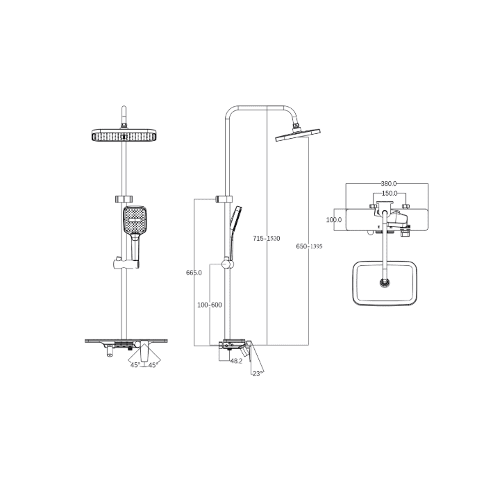 Cмеситель для ванны (с душевой стойкой и тропическим душем) ГРАФИТ TOKITO TOK-RAI-1025