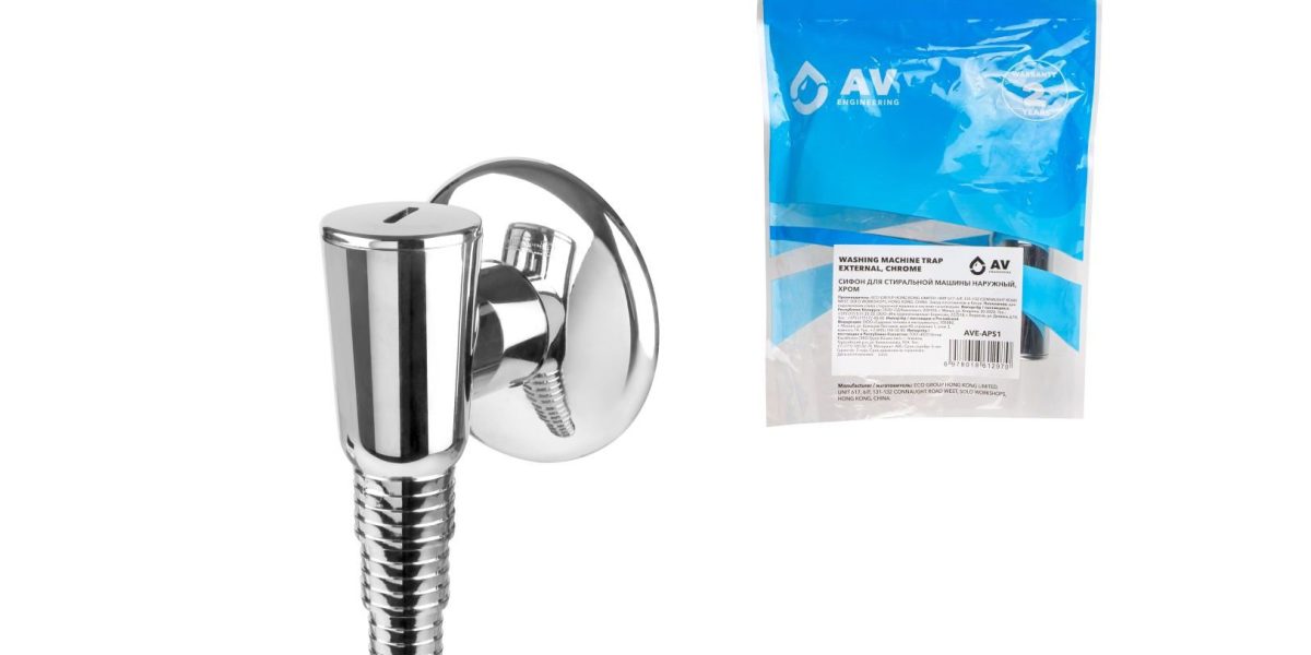 Сифон д/стиральной машины наружн. хром AVE-APS1 AV Engineering