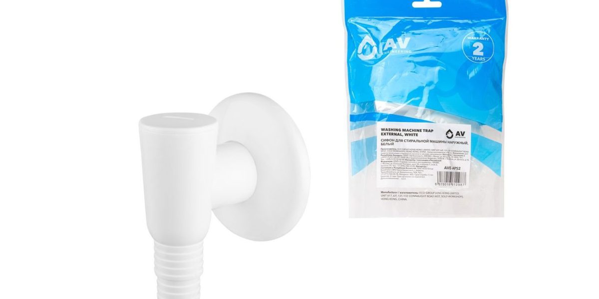 Сифон д/стиральной машины наружн. белый AVE-APS2 AV Engineering