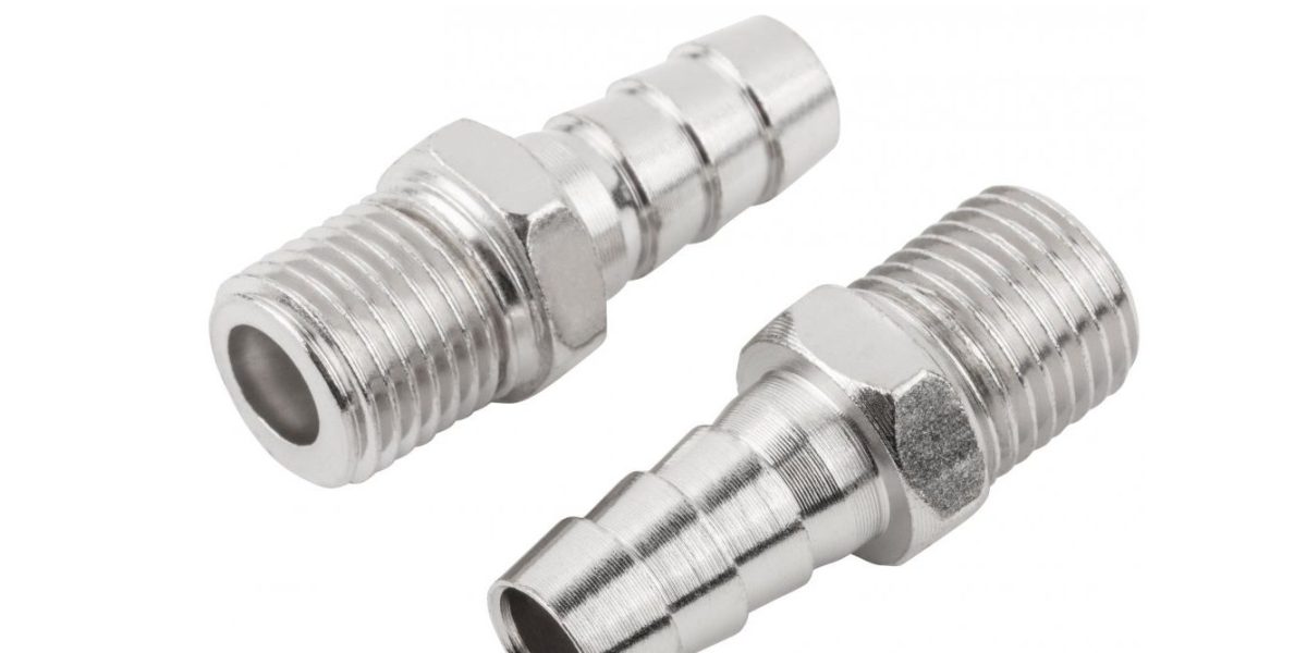 Адаптеры-соединители ”елочка” – внешняя резьба. Предназначены для соединения различных частей пневмосистем. Материал: инструментальная сталь с никелевым антикоррозийным покрытием.