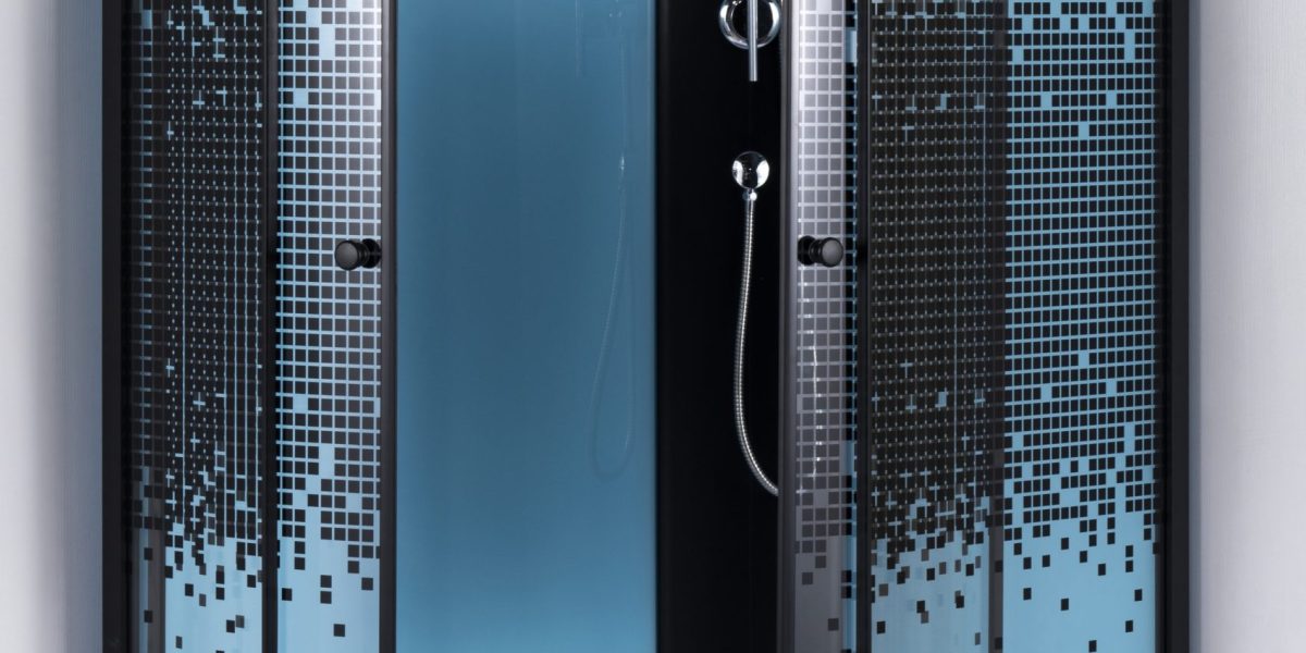 Душевая кабина размером 120*80*215 левая Задние стекла голубые, в металлическом каркасе чёрного цвета, передние прозрачные с пикселями, толщина стекол 4 миллиметра. Высота поддона 25 см, ПОДДОН С БОРТИКОМ. Чёрная панель, чёрный алюминиевый каркас. ...