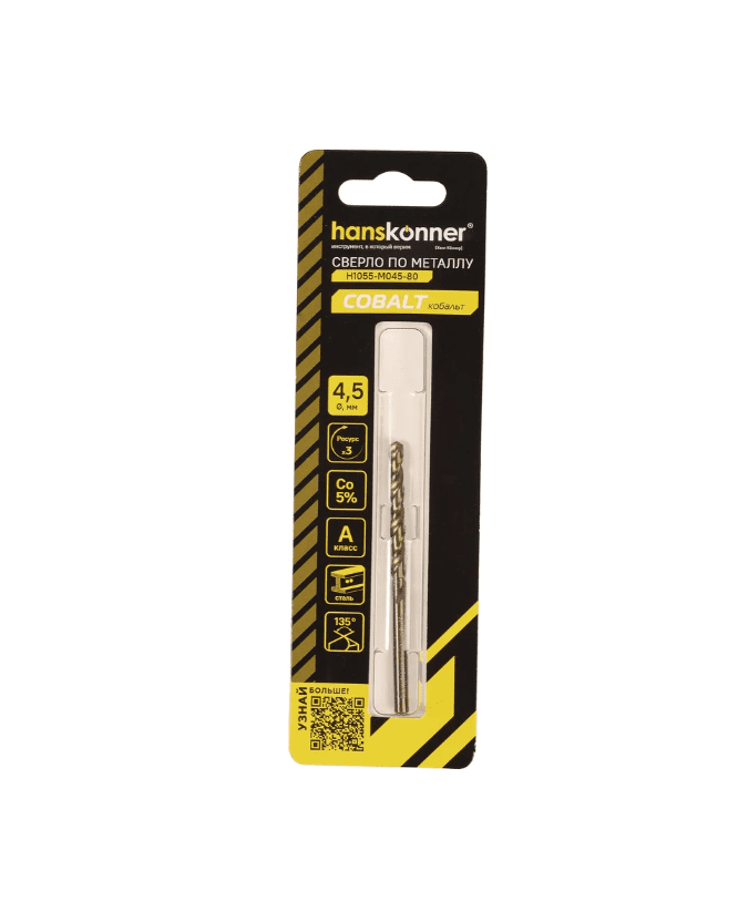 Сверло по металлу 4,5*80мм COBALT Hanskonner