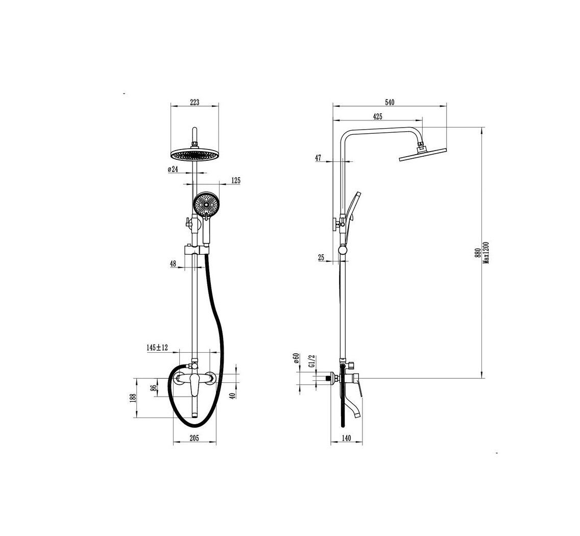 Душевая система D35, серия 710 черный ECONOCE EC0714BL