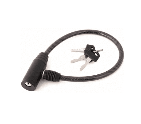 Велосипедный замок Apecs представляет собой прочный стальной шнур 8 мм в поперечнике, на конце которого закреплён небольшой блок со встроенным секретным механизмом.