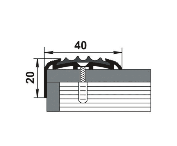 Накладка на ступень с одной вставкой из ПВХ, которая предохраняет от скольжения, а также выполняет функцию грязезащиты. Имеет скрытые монтажные отверстия.
