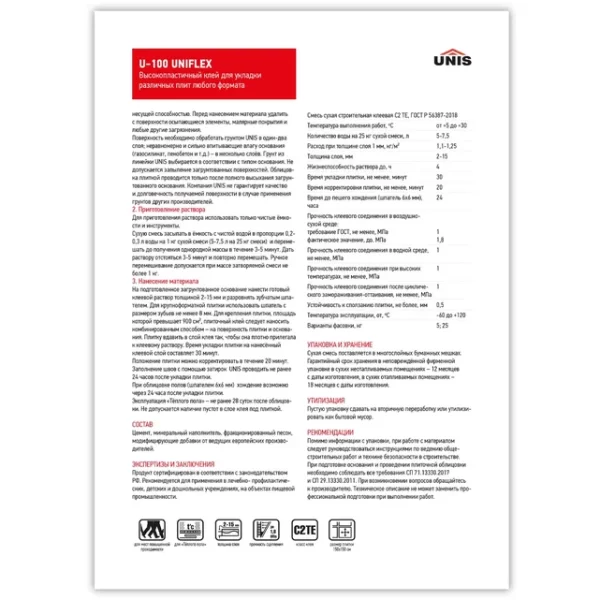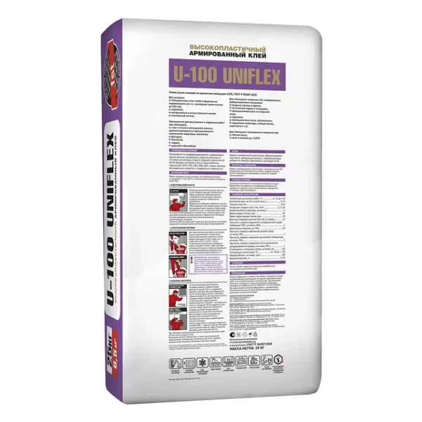 Высокопластичный армированный клей для плитки любого типа и формата. Профессиональный клей для укладки облицовочных плит любого формата из керамогранита, керамики, натурального и искусственного камня, клинкерной плитки. Применяется для внутренних и наружных работ при облицовке стен и полов в квартирах, магазинах, для облицовки фасадов, балконов, террас, цоколей и бассейнов. Подходит для поверхностей, подверженных деформационным нагрузкам: входные группы в здание, облицовка лестничных маршей и площадок, паркингов, промышленных цехов и складских зон, промышленных полов, ж/д вокзалов, подземных переходов, станций метро, аэропортов и т.д. Для облицовки нагреваемых поверхностей: теплых полов, печей и каминов до +120°C.