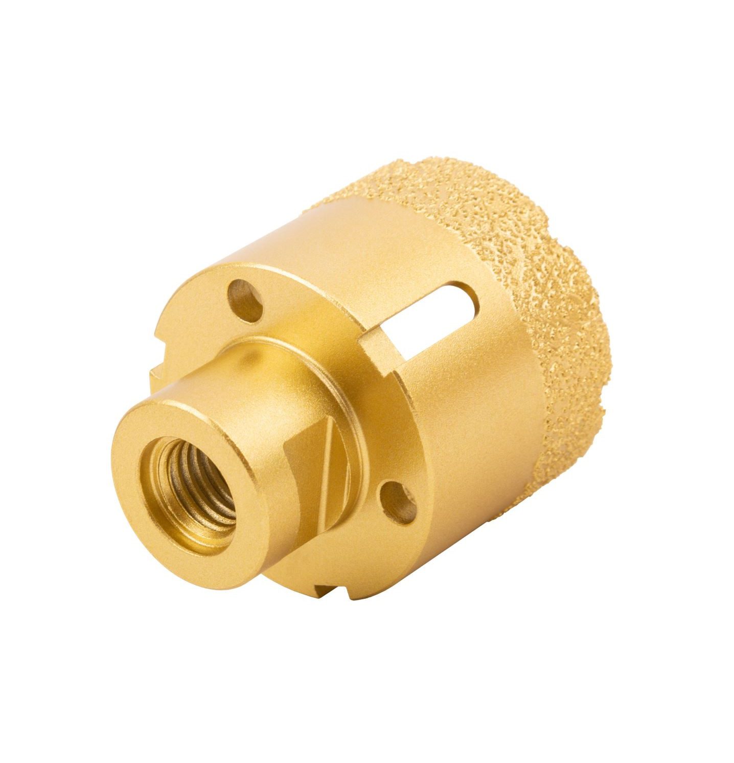 Коронка кольцевая для УШМ Fit 16347, М14, по керамограниту, камню и кафелю алмазная, вакуумное спекание 50х60 мм предназначена для вырезания круглых отверстий в керамограните, кафельной плитке, бетоне, граните, мраморе, кирпиче, стекле. Сухое и влажное сверление.