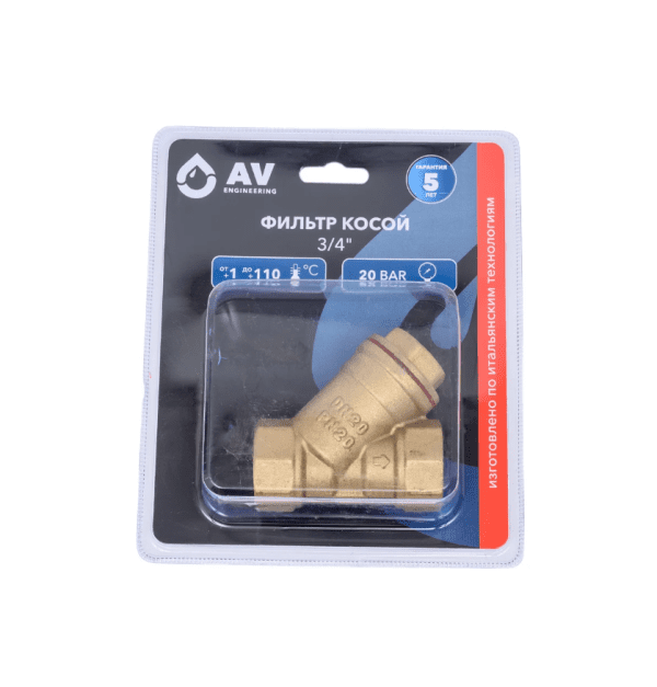 Фильтр механической очистки косого типа. Может устанавливаться в горизонтальном и вертикальном (движение потока – сверху-вниз) положении. Корпус и пробка изготовлены горячим прессованием из латуни марки CW617N (европейский стандарт EN 12165). Между ними предусмотрена тефлоновая уплотнительная прокладка. Пробка оснащена отверстием для пломбировки.