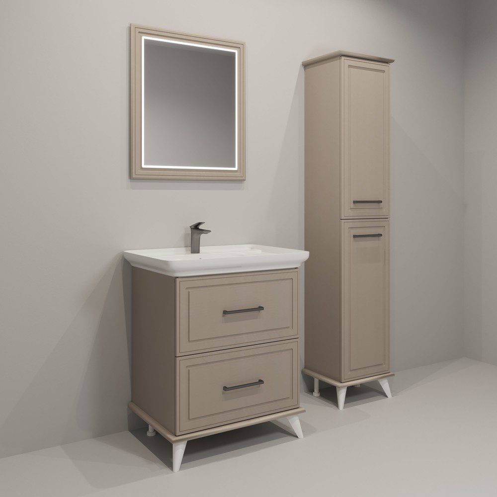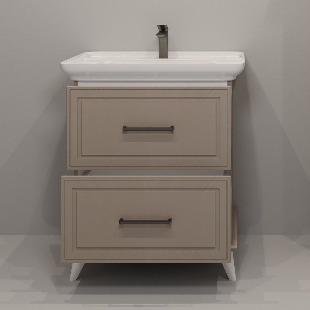 Тумба оснащена скрытыми направляющими, что обеспечивает плавное и бесшумное закрывание ящиков. Дизайнерские опоры и металлические ручки придают мебели изысканный акцент. Лаконичная фрезеровка подчеркивает стильную геометрию форм и создает гармонию в дизайне.