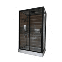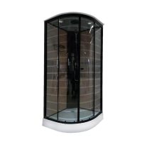 Комплектация: ПОДДОН С БОРТИКОМ, серый матовый профиль и дуги, стеклянная панель, верхний душ, ручной душ с держателем, стеклянная полка, смеситель, без электрики.