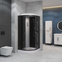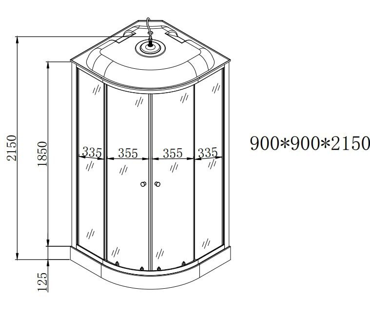 | Комплектация | 2-Х Режимный смеситель – латунь, хромированный. Верхний душ – пластик Ручной душ –пластик Двойные верхние ролики и одинарный нажимной ролик – пластик, резина,шпилька латунь. Дверные ручки – пластик хромированный Средняя панель – бамбук Заглушка вентиляции декоративная – пластик. |