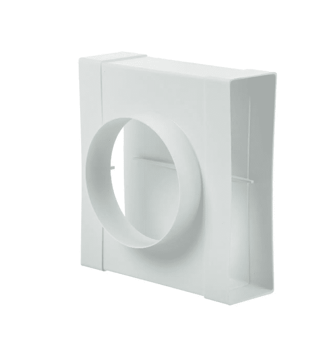 Тройник – это неотъемлемая часть современных приточных и вытяжных вентиляционных систем, который способствует разветвлению или объединению воздуховодов в единую сеть. Данный тройник оснащен двумя плоскими и одним круглым отверстием, расположенными по отношению к друг другу под углом 180 градусов. Деталь изготовлена из качественного ABS-пластика белого цвета. Плоский тройник с выходом на фитинг имеет особую конструкцию, которая позволяет ему быть компактным и занимать меньше места, что особенно важно при монтаже в ограниченных пространствах. Его плоская форма также облегчает его установку в труднодоступных местах.