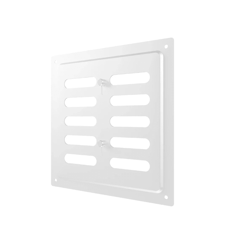 Регулируемая металлическая решетка предназначена для установки в вентиляционный проем, где требуется изменение объема поставляемого воздуха. Решетка изготовлена из стали с полимерным покрытием, устойчива к механическим воздействиям и может размещаться как внутри, так и снаружи помещений. С помощью регулятора на лицевой части решетки возможно изменить объем воздушного потока или полностью перекрыть вентиляционный канал. Небольшая толщина стали — 0.5 мм — позволяет монтировать решетку практически вровень со стеной.